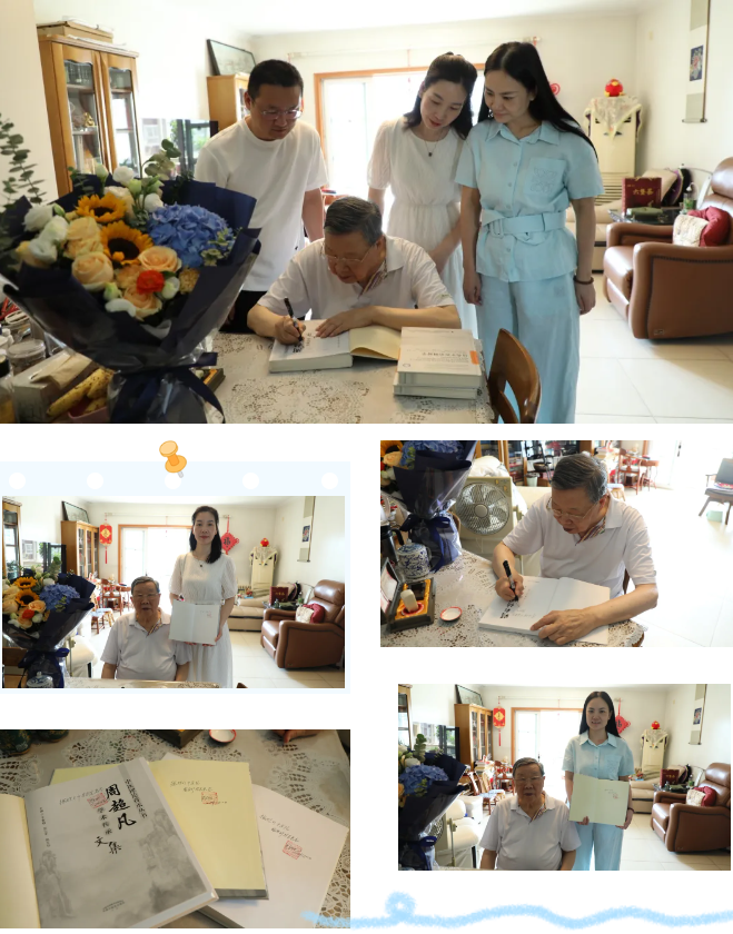 随后,院领导郑重地取出周老主编的著作,周老神情专注而庄重,在扉页上签名题字,笔锋刚劲有力,每一个字都蕴含着他对我院的深切期许与美好祝福。周老将这些珍贵著作递给院领导,这份特殊的礼物,不仅是知识的传承,更是周老对医院发展的一份深情牵挂。